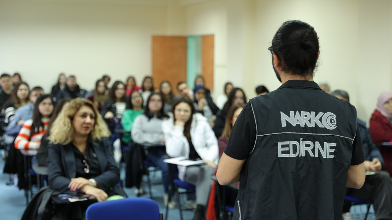 Edirne'de Trakya Üniversitesi öğrencileri bağımlılıkla mücadele konusunda bilgilendirildi.