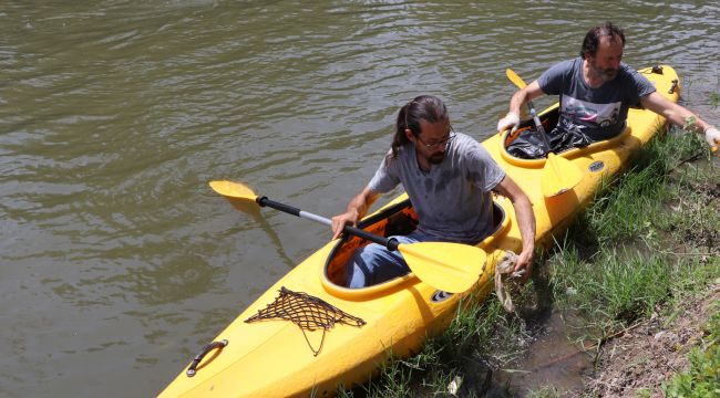 Etkinliğe nehir kenarındaki çöpleri toplayarak başlayan çevreciler, ardından kanolarla nehre inerek su üzerindeki ve karadan ulaşamadıkları bölgelerdeki atıkları topladı.