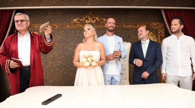 Meryem Aydın ile Mehmet Sağlam'ın nikahını da kıyan Helvacıoğlu nikah salonuna "Miniş" adlı yavru kediyle geldi.