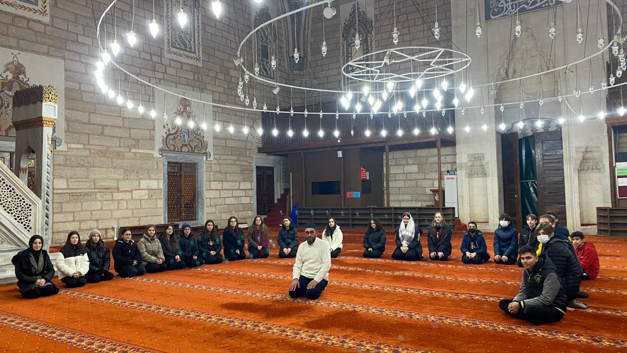Edirne Yıldırım Beyazıt Anadolu Lisesi 9/A sınıfı da protokol kapsamında bugünkü derslerini öğretmenleri Duygu Nalbant eşliğinde Sultan II. Beyazıt Külliyesi Camisi'nde gerçekleştirdi.