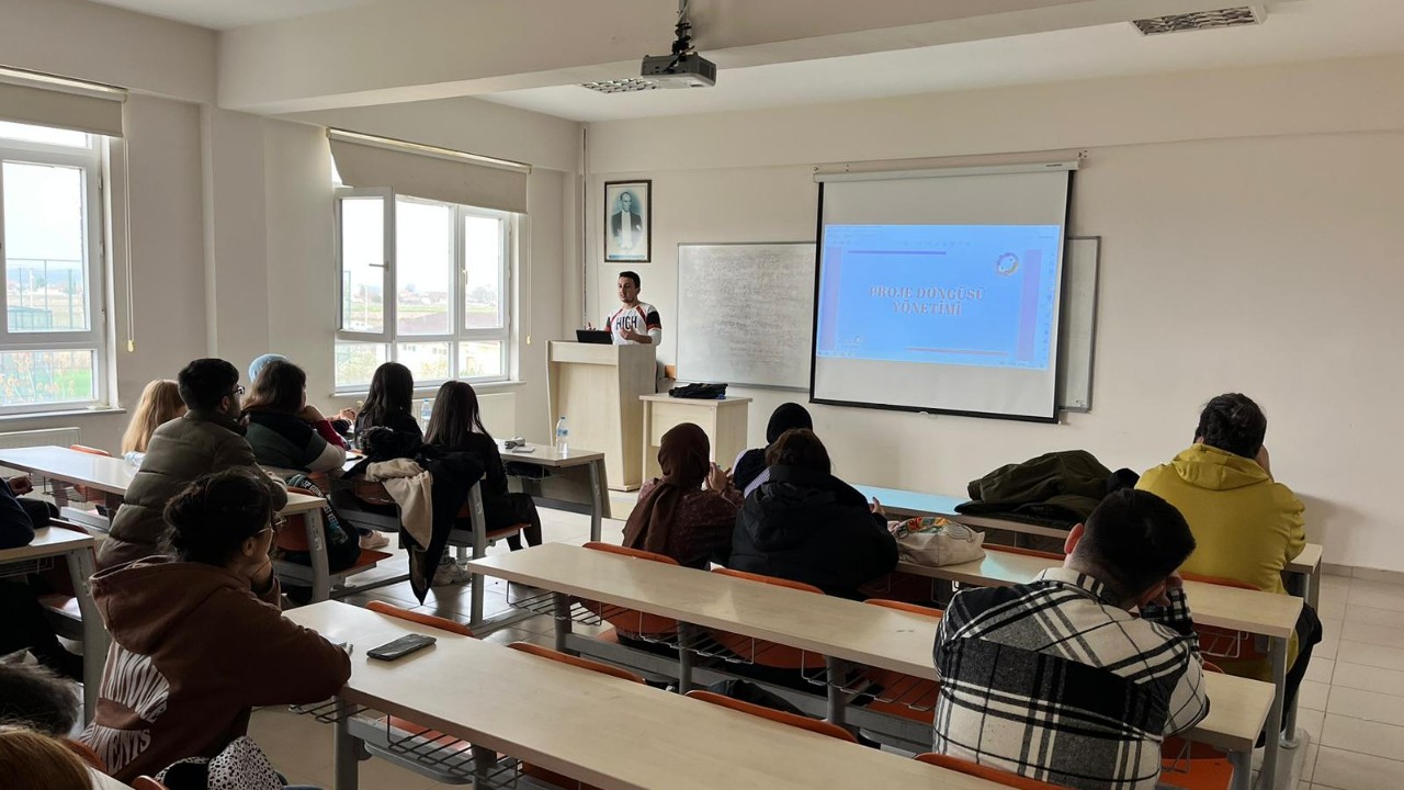 İpsala Meslek Yüksekokulunda düzenlenen programda, Keşan Hakkı Yörük Sağlık Yüksekokulu Hemşirelik Bölümü 3. sınıf öğrencisi Vizyon Kulübü uluslararası çalışmalar eğitmeni Berat Gök tarafından öğrencilere, ERAMUS, AB projesi hazırlama, proje süreci ve yurt dışı bursları hakkında bilgiler verildi.
