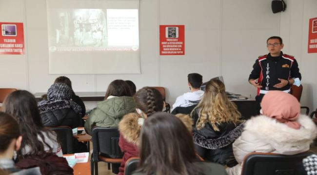 Okul dışı öğrenme dersi kapsamında Edirne Belediyesi İtfaiye Müdürlüğü’nde düzenlenen eğitimde İtfaiye Eri Sefa Tabak tarafından verilen teorik ve uygulamalı eğitim sonucunda öğretmen adayları yangınla mücadelede bilgi ve becerilerini geliştirdiler. (Haber Merkezi)