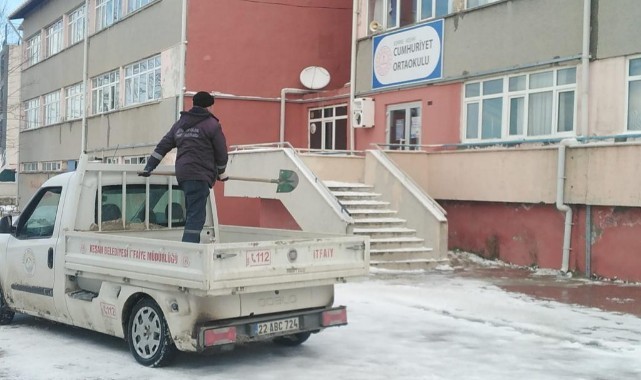 Çalışmalar kapsamında 28 okul ve 2 öğrenci yurdu bahçesinde tuzlama ve kar temizliği yapıldı.