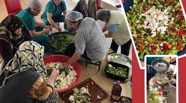 Hazırlanan turşular, kış aylarında huzurevinde çıkacak yemek menüsünde yerini alacak.