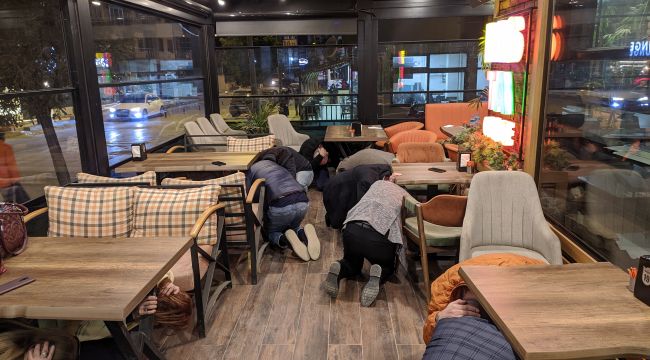 Tatbikat, 18.57 itibarıyla "Çök, kapan, tutun" hareketinin uygulanmasıyla hayata geçirildi.