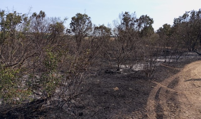 Yangında ormanlık alan ve bölgede arıcılık yapan bir üreticinin kovanları zarar gördü. (AA)
