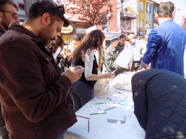 Saraçlar caddesinde vatandaşa otizmle ilgili bilgilendirme yaptıkları, bilgisi olmayanları bilgi sahibi yapmayı hedeflediklerini belirten İl Sağlık Müdürlüğü sosyal çalışma biriminden Onur Öztürk, formu dolduranlara bez torba hediye ettiklerini söyledi.
