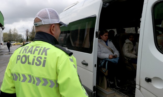 Trafik Tescil ve Denetleme Şube Müdürlüğü Ekipler Amiri Cafer Akcan ve ekipler, otobüslere binerek yolcuların emniyet kemerinin takılı olup olmadığını tek tek kontrol etti.