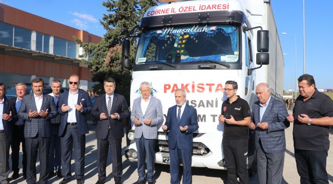 Kırklareli'nde, sel felaketi nedeniyle zor günler yaşayan Pakistanlılar için hazırlanan gıda yüklü yardım tırı, dualarla uğurlandı.