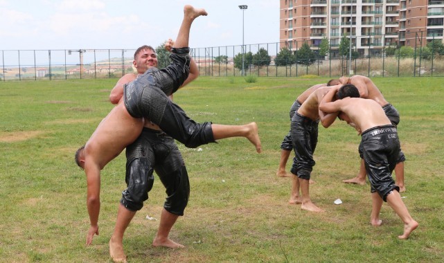 Edirne Sarayiçi Er Meydanı'nda 7-9 Temmuz'da gerçekleştirilecek Kırkpınar'da başarı elde etmek isteyen pehlivanlar, son antrenmanlarını Edirne Belediyesi Tuncaspor Kulübü Tesisleri'nde gerçekleştirdi.