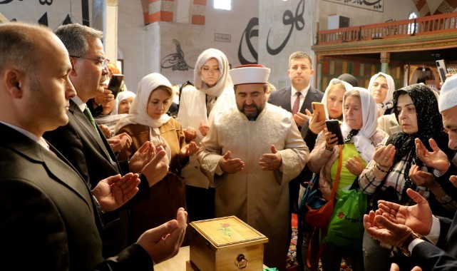 Sakal-ı Şerif tekbirler ve dualar eşliğinde yeni kutusuna konuldu.