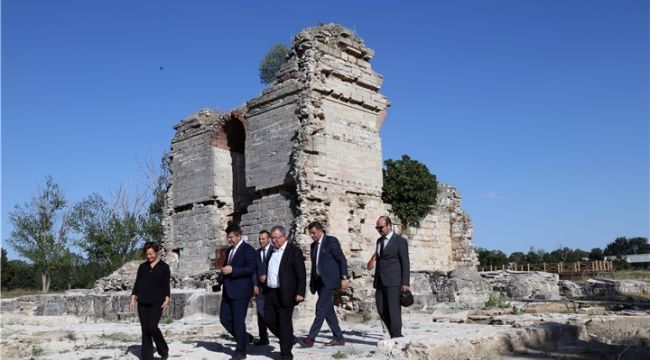 Vali Kırbıyık, Trakya Üniversitesi (TÜ) tarafından kazı çalışmalarının yürütüldüğü alanda incelemede bulundu, TÜ Rektörü Prof. Dr. Erhan Tabakoğlu ve Sanat Tarihi Bölümü Öğretim Üyesi Doç. Dr. Gülay ApaKurtişoğlu'ndan bilgi aldı.