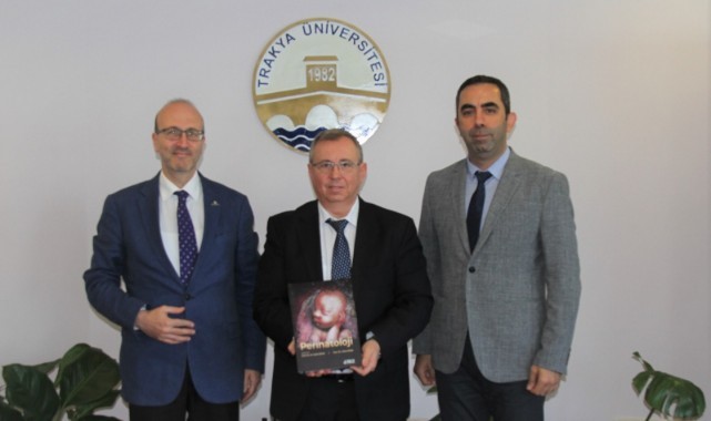 Trakya Üniversitesi Tıp Fakültesi Kadın Hastalıkları ve Doğum Ana Bilim Dalı Başkanı Prof. Dr. N. Cenk Sayın ve Doç. Dr. Cihan İnan editörlüğünü üstlendikleri, gebelik sırasındaki olumsuzlukları teşhis eden ve gerekli tedaviyi uygulayan uzmanlık dalı olan perinatoloji alanında hazırlanan kitaplarını, Trakya Üniversitesi Rektörü Prof. Dr. Erhan Tabakoğlu'na sundu.