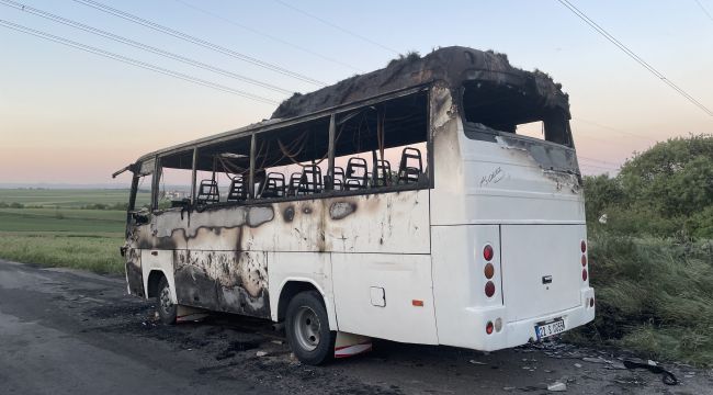 Kentteki bir fabrikada çalışan işçileri evlerine götüren 22 S 0055 plakalı servis minibüsünün ön kısmından Avarız köyü yakınlarında alevler çıkmaya başladı.