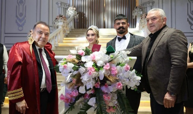 Genç çiftin nikahını Antalya Büyükşehir Belediyesi Başkanı Muhittin Böcek kıyarken, çiftin nikah şahitliğini ise Kırkpınar’ın efsane Ağası Seyfettin Selim yaptı.