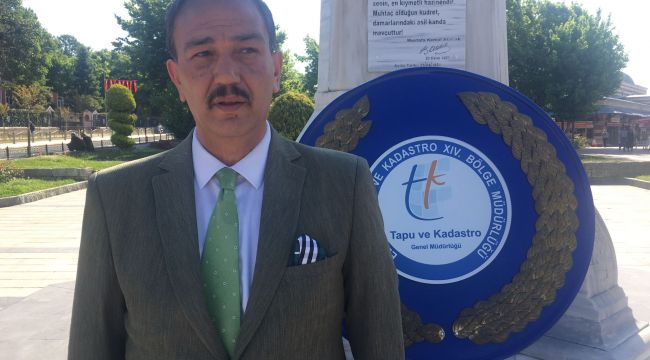 Törende konuşma gerçekleştiren Tapu ve Kadastro Edirne Bölge Müdürü Akdemir, kurumlarının gerçekleştirdiği projelerle öncü bir kurum olduğunu ifade etti. Akdemir; “Tapu ve Kadastro Genel Müdürlüğü, Türkiye'de mülkiyet ve buna ilişkin hakların tesisi ve muhafazası ile görevli olup, devletin en önemli fonksiyonlarından birini yerine getiren büyük bir kamu kurumudur. Kurumumuz, merkez birimlerimizin yanı sıra 23 bölge müdürlüğü, 973 tapu ve 81 kadastro müdürlüğüyle Türkiye’nin tüm il ve ilçelerinde, yaklaşık 20 bin personeli ile tapu, kadastro ve harita işlerini yürütmektedir. Her yıl artan işlem adedi ve devlete sağladığı gelirlerle, dün, bugün ve gelecekte mülkiyetin garantisi olan kurumumuz geliştirdiği büyük projelerle öncü bir kurum olduğunu ortaya koymuştur” şeklinde konuştu. (Haber-Fotoğraf: Ali KARAMAN)