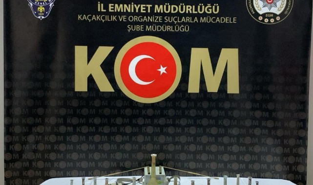 İl Emniyet Müdürlüğü Kaçakçılık ve Organize Suçlarla Mücadele Şubesi ekipleri, tarihi eser kaçakçılığıyla mücadele çalışmaları kapsamında bir otomobilde arama yaptı.