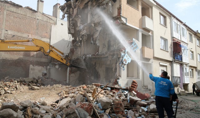 Çalışmalar kapsamında betonarme bina İl Özel İdaresi ekiplerince yıkıldı.