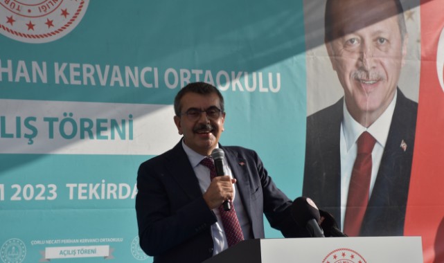 Milli Eğitim Bakanı Yusuf Tekin, Tekirdağ'ın Çorlu ilçesinde hayırsever Aydın Kervancı'nın anne ve rahmetli babasının adını yaşatmak için yaptırdığı 24 derslikli Necati-Perihan Kervancı Ortaokulunun açılış törenine katıldı.