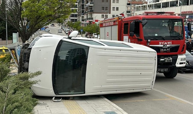 Edinilen bilgilere göre, E.K. idaresindeki 22 plakalı hafif ticari araç ile O.Ö. yönetimindeki 22 plakalı otomobil, henüz belirlenemeyen bir nedenle kavşakta çarpıştı. Çarpmanın şiddetiyle hafif ticari araç yan yatarak devrildi.