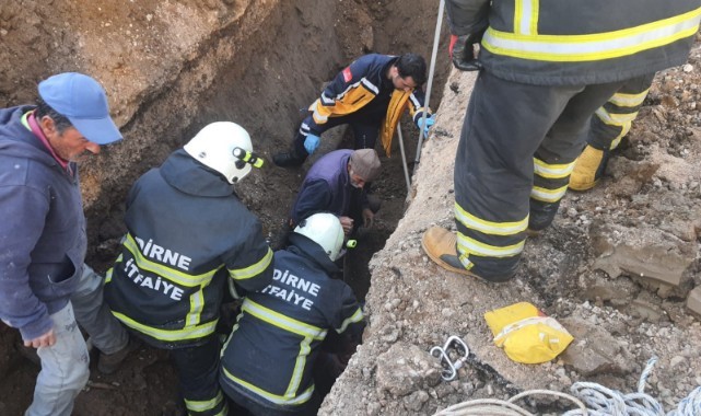 Karaağaç Mahallesi Ortaköy Caddesi'nde altyapı çalışmasında yaklaşık 3 metre derinliğindeki çukurun içinde çalışan İsmet Irmak'ın (48) üzerine toprak yığını kaydı.