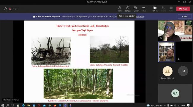 Doç. Dr. Şahin Yıldırım, Erken Demir Çağı’ndan MS. 3’üncü yüzyıla kadar uzanan zaman diliminde Trakya’da ölü gömme geleneği olarak tümülüslerin önemli bir yer teşkil ettiğini belirterek, bölgede yürütülen kazı ve sondaj çalışmaları hakkında bilgiler verdi.