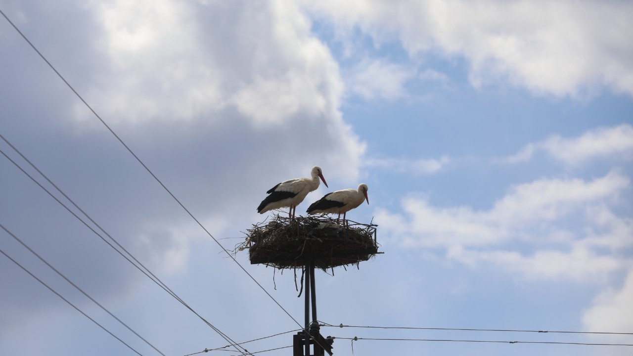 Sonbaharda sıcak bölgelere göç eden leylekler, havanın ısınmasıyla Edirne'de elektrik ve telefon direkleri, cami kubbeleri ile evlerin çatısına yaptıkları yuvalarına dönüyor.