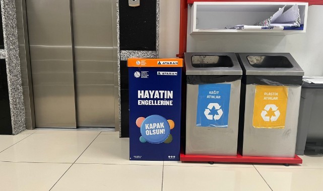 Proje kapsamında plastik kapakların geri dönüştürülmesi için Genel Müdürlük ve bağlı işletmelerde yer alan, üzerinde TOFD logosu bulunan kutularda kapaklar toplanıyor.