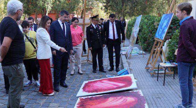Vali Kırbıyık ve beraberindekiler fidan dikiminin ardından, Plastik Sanatlar Topluluğu tarafından Güzel Sanatlar Fakültesi'nde 29 Ekim Cumhuriyet Bayramı onuruna açılan açık hava uygulama sergisini gezdi.(AA)