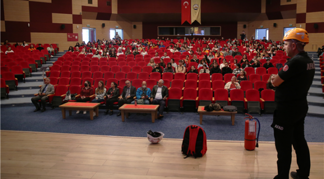 Eğitimde afetlerden önce alınması gereken tedbirler, afet anındaki doğru davranış şekilleri ve afet sonrası yapılması gerekenler anlatıldı. Başta deprem olmak üzere ülkemizde sıkça görülen afetlere yönelik gerçekleşen eğitimde ayrıca afet ve acil durum planı, afet ve acil durum çantası, yaşam çevrelerindeki risklerden de bahsedildi.