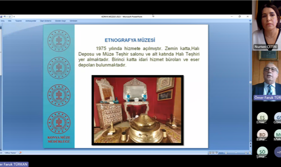 Çevrim içi olarak düzenlenen konferansa konuşmacı olarak katılan Konya Müzesi Müdürü Ömer Faruk Türkan, Konya’daki müzeler ve kültür varlıkları hakkında genel bilgiler verdi.