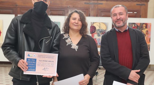 Sergi açılışında konuşan atölye sorumlusu Trakya Üniversitesi Güzel Sanatlar Fakültesi Dekan Yardımcısı ve Temel Eğitim Bölümü öğretim üyesi Doç. Ayhan Çetin “Üniversitemizin 40. yılı ve aynı zamanda 22.02.2022 tarihinin Edirne Günü olması nedeniyle bu sergiyi düzenledik. On öğrencimizin yaklaşık 50 çalışmasından oluşan bir sergi. Sergide öğrencilerimiz tema olarak model, natürmort, manzara ve imgesel temaları kullandılar. Burada tuval üzerine yağlı boya, tuval üzerine akrilik, kağıt üzerine sulu boya, kağıt üzerine karışık teknik, baskı gibi çeşitli tekniklerden oluşan bir seçki oluşturduk.” diyerek sergiye katılan öğrencileri tebrik etti.