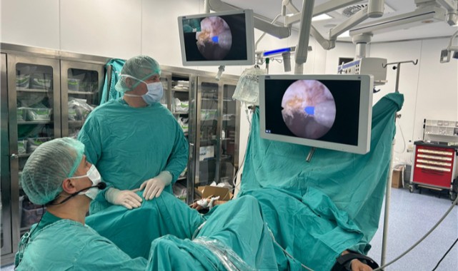 Teorik ve uygulamalı eğitimin verildiği kursta ameliyat sırasında kursiyer hekimlerden gelen sorular da sesli bağlantı ile yanıtlandı. (Haber Merkezi)