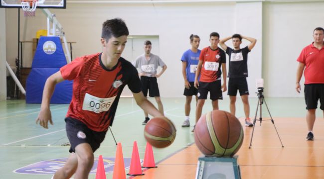 TÜ 75. Yıl Spor Salonu'nda basketbol branşıyla başlayan sınavlarda adaylar parkuru belirlenen sürede tamamlamak için yarıştı.