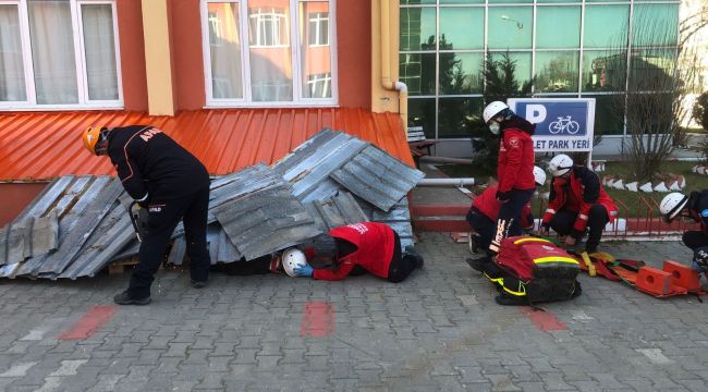 Uzunköprü Uygulamalı Bilimler Yüksekokulu Konferans Salonu’nda AFAD binasından online bağlantı yöntemiyle afet farkındalık eğitimi verilmesi ile başlayan etkinlikte oluşturulan senaryo gereği öğrencilerin sınıflara girmesiyle alarm verildi. Çök-kapan-tutun yöntemiyle depremin sona ermesini bekleyen öğrencilerin sirenin bitimiyle katlardan tahliyesi sağlanarak toplanma alanına taşındı. Yine senaryo gereği enkaz altında kalan depremzedenin tahliyesi, yangın söndürme ve yaralıyı kurtarma ve bina tahliyesi tatbikatları ekiplerce gerçekleştirildi.