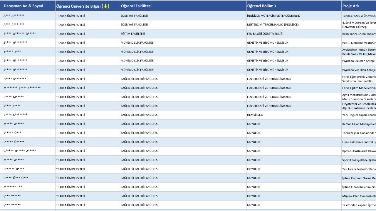 TÜBİTAK Bilim İnsanı Destek Programları Başkanlığı (BİDEB) tarafından yürütülen “2209-A Üniversite Öğrencileri Araştırma Projeleri Destekleme Programı” 2022/2 dönemi kapsamında yapılan başvuruların destek sonuçları açıklandı. Başvuru sonuçlarına göre Trakya Üniversitesinin lisans programlarında eğitim gören 27 öğrenci, TÜBİTAK 2209-A kapsamında hazırladıkları projelerle başarılı olarak destekleme almaya hak kazandı.