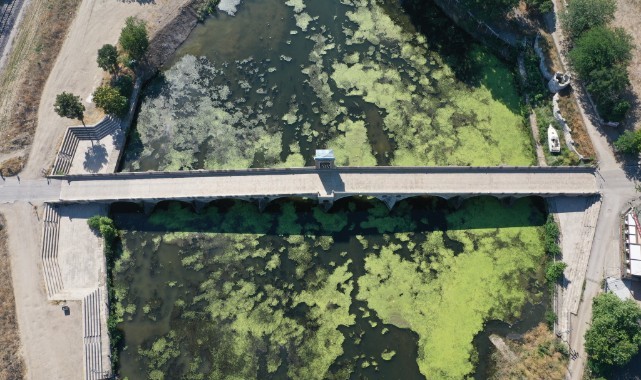 Sıcaklıkların da mevsim normalleri üzerinde seyretmesiyle nehrin yüzeyin bir büyük bir bölümünü yosun ve su mercimekleri kapladı.