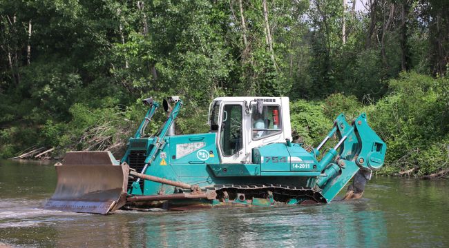 DSİ ekipleri iş makinalarıyla Değirmenyeni köyündeki Şelale mevkisinde nehrin yatağında biriken kumu temizledi.