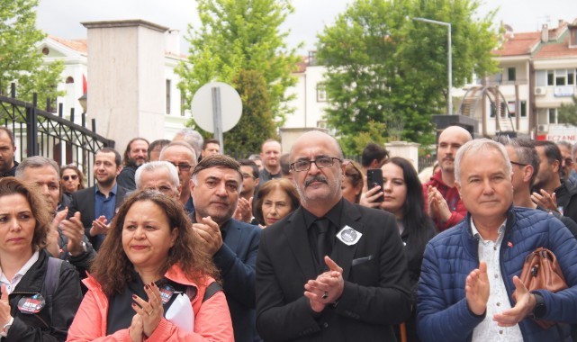 Basın açıklamasının ardından toplanan eğitimciler, 3 dakika boyunca alkış ederek eğitimde şiddeti protesto etti.(Haber: Mehmet Efecan HIDIROĞLU)