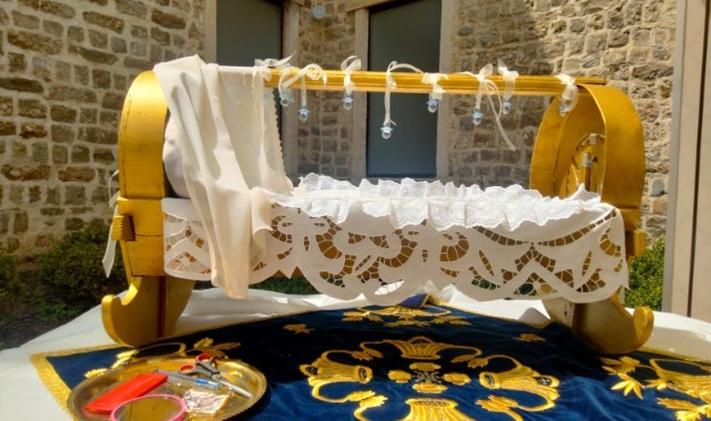 Devecihan Kültür Merkezi'nde Türk Mutfağı Haftası etkinlikleri kapsamında, yapılacak ilk adım ritüeli için getirilen bebeğin ayaklarına kırmızı bir kurdele bağlandı ve bebek Tay Çöreklerinin üstünden geçirildi.