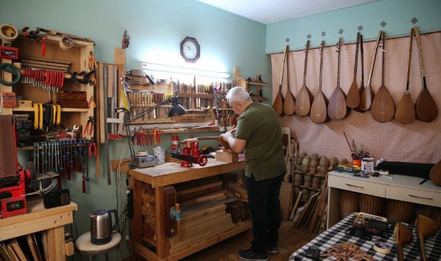 Yukarı Zaferiye Mahallesi'nde bir atölye kuran 54 yaşındaki Parmaksız, 2022'de emekli olarak tüm ilgisini saz yapımına yöneltti.