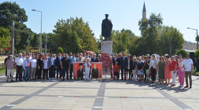 CHP Edirne İl Başkanlığı tarafından düzenlenen tören, çelenk sunumuyla başladı. Ardından Edirne Belediye bandosu eşliğinde saygı duruşundan bulunulup, İstiklal Marşı okundu.