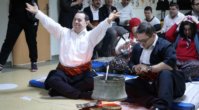 Edirne Özel Yürekler Halk Eğitim Merkezi öğrencileri okullarında düzenlenen programda kazanda temsili olarak helva pişirdi.