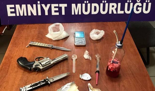 İl Emniyet Müdürlüğü ekipleri ilçe merkezinde şüphe üzerine 2 kişiyi durdurarak üzerlerini aradı. Üzerlerinden uyuşturucu çıkması üzerine ikametlerinde de yapılan aramada 81 gram metamfetamin, 3 uyuşturucu kullanma düzeneği, 1 kurusıkı tabanca, 3 sustalı bıçak ele geçirildi. Olayla ilgili 2 şüpheli ve bağlantılı oldukları tespit edilen 3 kişi gözaltına alındı. Edirne Adliyesi'ne sevk edilen 5 zanlı çıkarıldığı hakimlikçe tutuklandı. (AA)