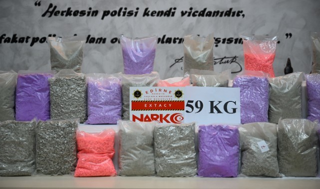 Edirne'de kullandıkları tırlarda 58 kilo 176 gram sentetik uyuşturucu hap ele geçirilen 2 sürücü tutuklandı.