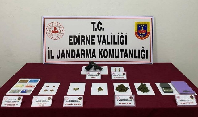 Edirne'de jandarmanın bir eve düzenlediği kaçakçılık operasyonunda uyuşturucu ve tarihi olduğu değerlendirilen sikke ele geçirildi.