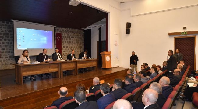 Toplantıya, Belediye Başkanı Recep Gürkan, Vali yardımcıları Sıdkı Zehin ve Eyyüp Batuhan Ciğerci, kurum müdürleri ve muhtarlar katıldı. (AA)