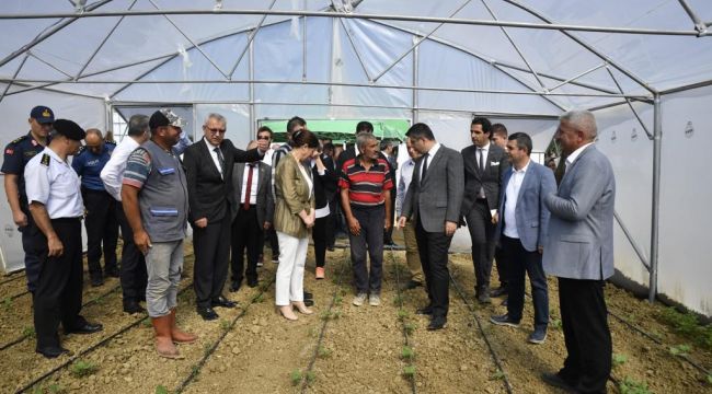 Keşan ilçesine bağlı İzzetiye köyünde Trakya Kalkınma Ajansı ve Keşan Belediyesi iş birliği ile kurulan 20 adet serayı gezen Vali Kırbıyık, yapılan tarımsal üretimleri yerinde inceledi.