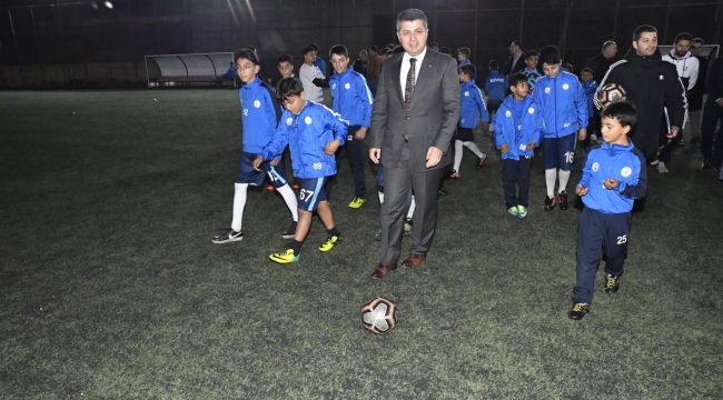 Sporcularla birlikte hatıra fotoğrafı çektirip penaltı atışı yapan Vali Kırbıyık, tesislerde de incelemelerde bulundu.