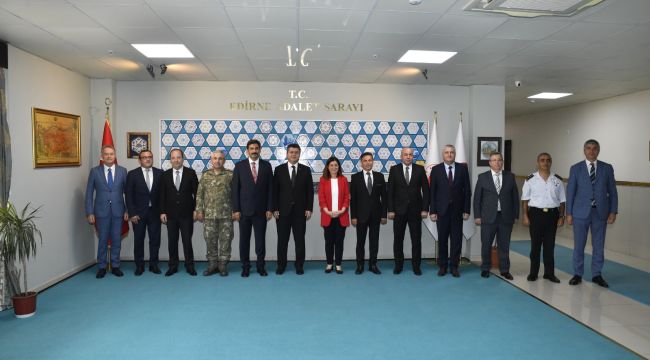 Edirne Valisi Hüseyin Kürşat Kırbıyık, Cumhuriyet Başsavcısı Mustafa Çakmak, Adli Yargı Adalet Komisyonu Başkanı Necati Görgülü, İdare Mahkemesi Başkanı Yüksel Arslan ve Vergi Mahkemesi Başkanı Gökhan Balaban’ı 2022-2023 Adli Yılı açılışı nedeniyle ziyaret ederek yeni adli yıllarını kutladı.